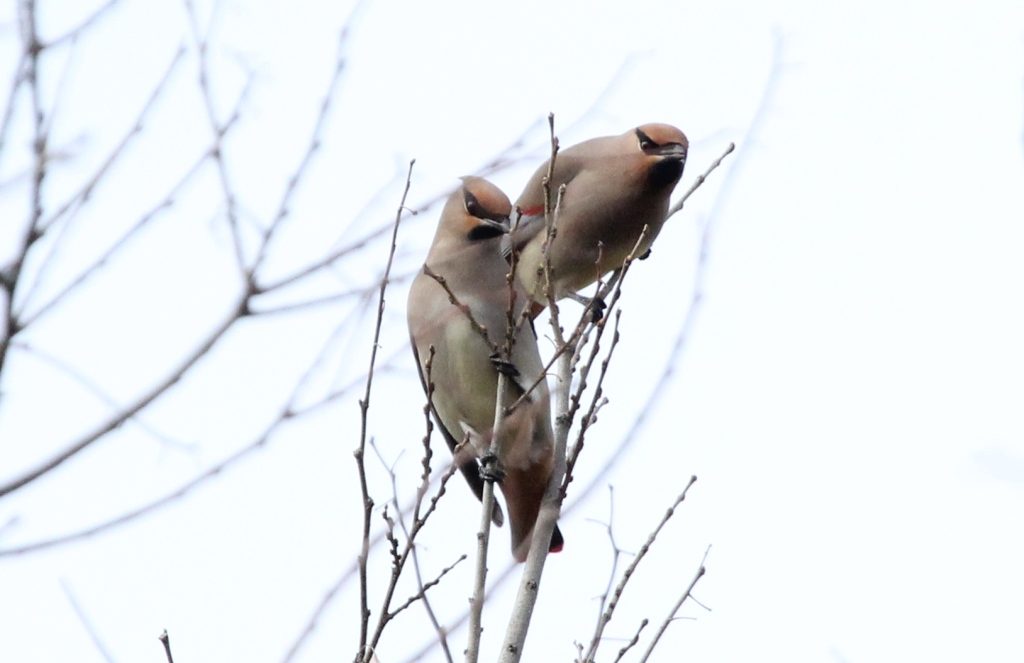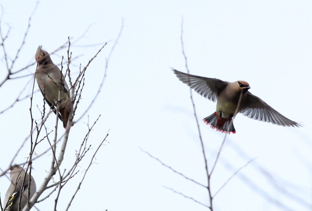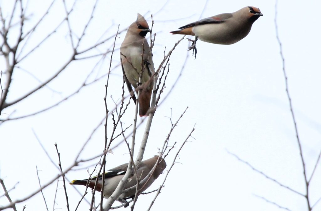 道後公園でヒヨドリを撮影していると、ヒレンジャク(36羽)が近くに来た。