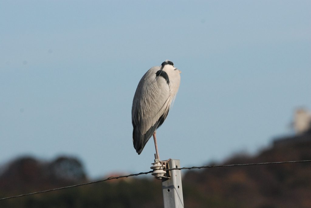 道後公園にいるアオサギ。電柱の上で感慨にふけっている様子だ。この1年を振り返っているんだろうか?