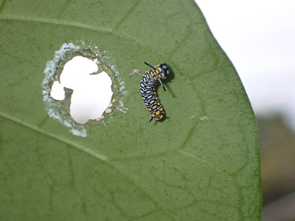 山口県周防大島の外入にあるアサギマダラ園に行ってきました。今年はアサギマダラの飛来が少ないとか・・・。ここにはフジバカマだけでなく、食草のキジョランが植栽されていてアサギマダラの卵や幼虫が観察できました。他のフジバカマ園も、キジョランなどの食草を植えて生態観察ができるといいと思いました。