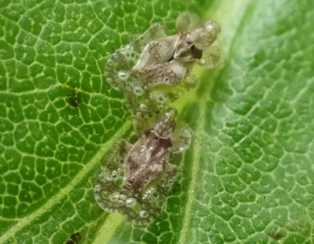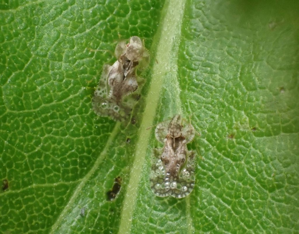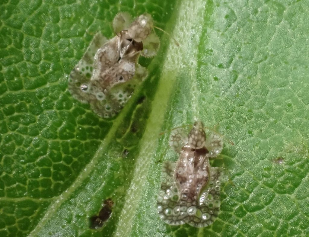セイタカアワダチソウの葉の上にアワダチソウグンバイがいました。