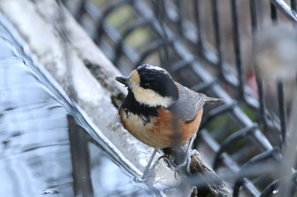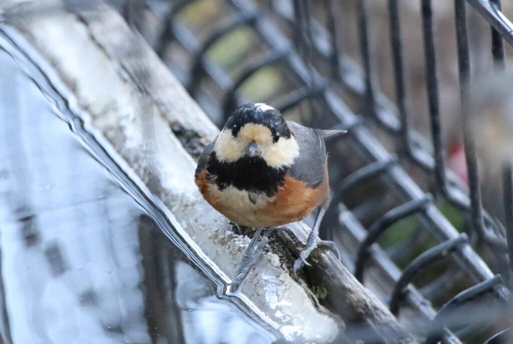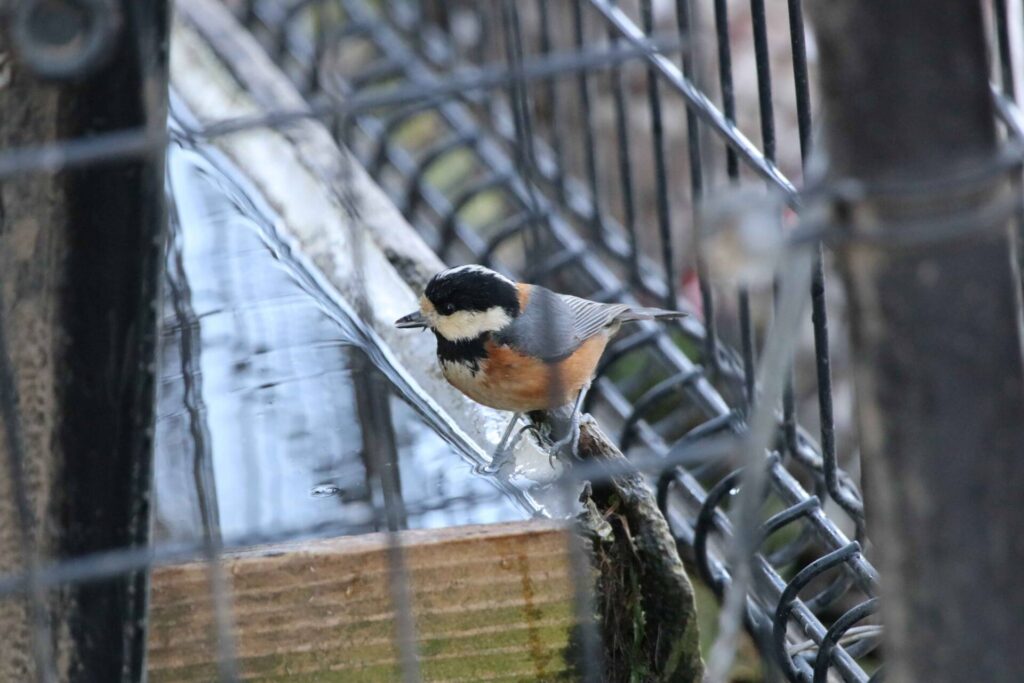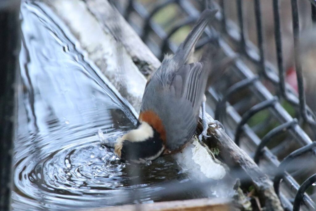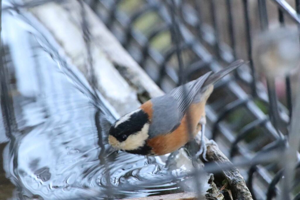 ヤマガラがシカの水飲み場で水浴びをしてました。小さな島ではこのような人工の水場が鳥たちには重要です。