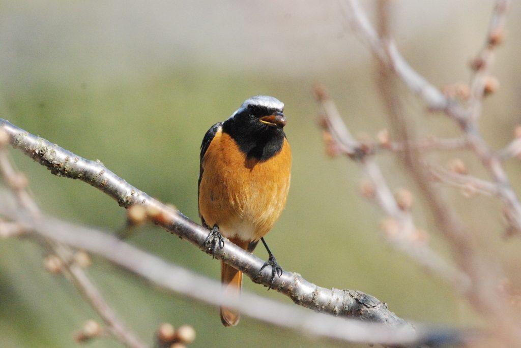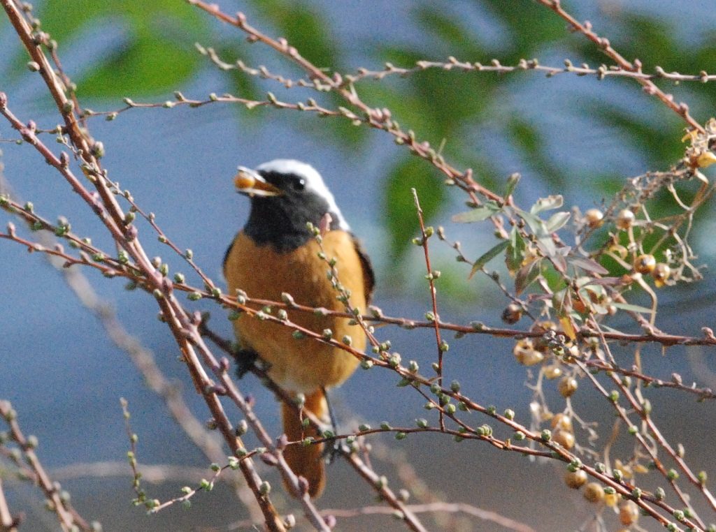 レンジャク類の写真を撮っていたら、近くにジョウビタキの雄がやってきた。