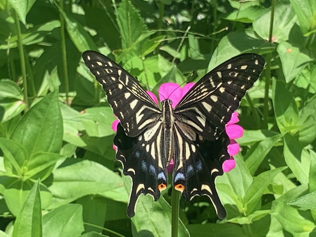 ナミアゲハがヒャクニチソウに訪花 @愛南町