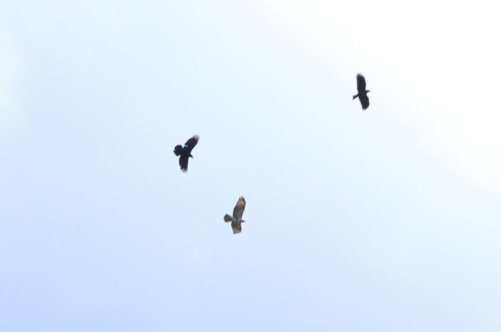 ノスリがカラスにモビングされる