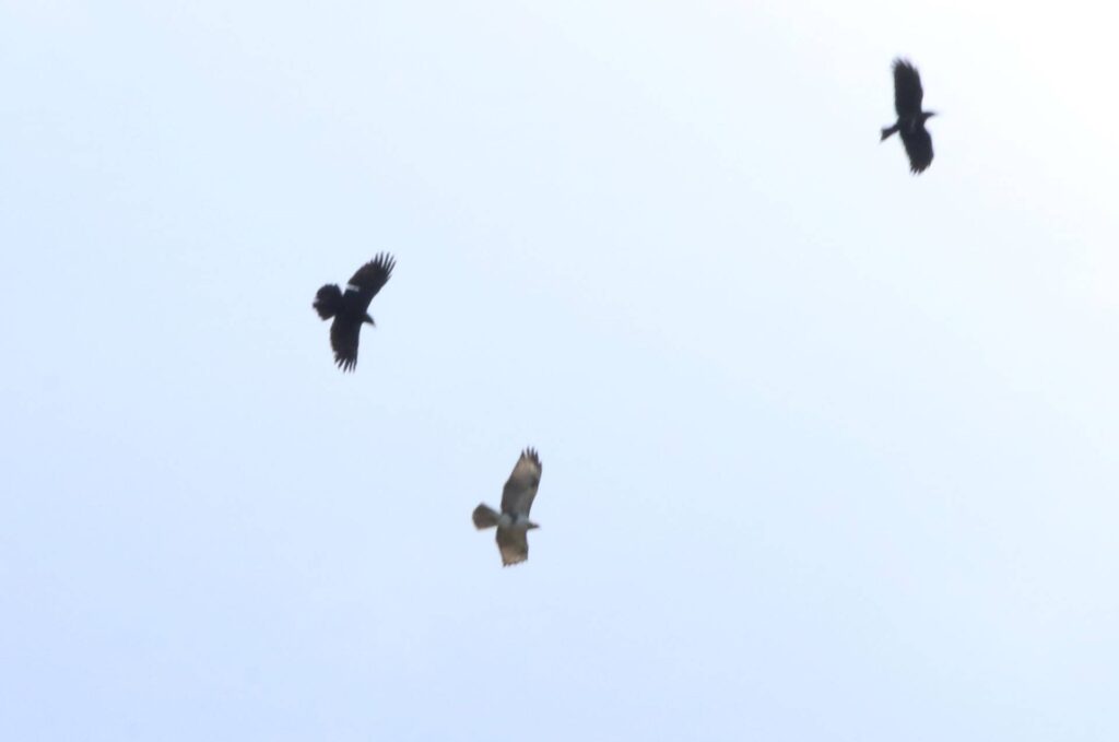 ノスリがカラスにモビングされていました。