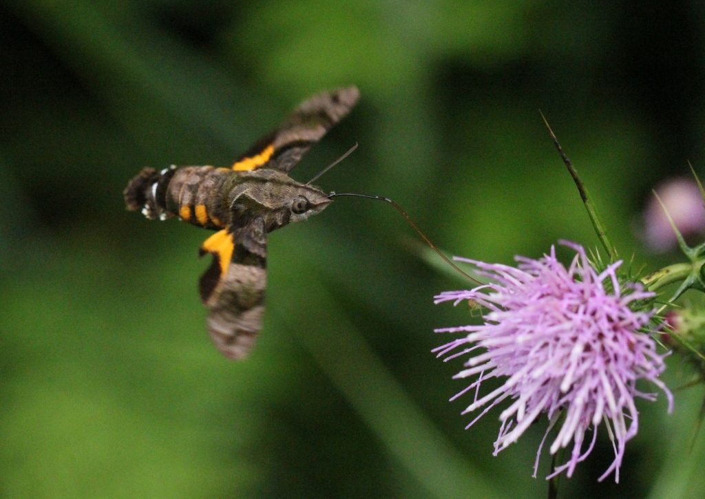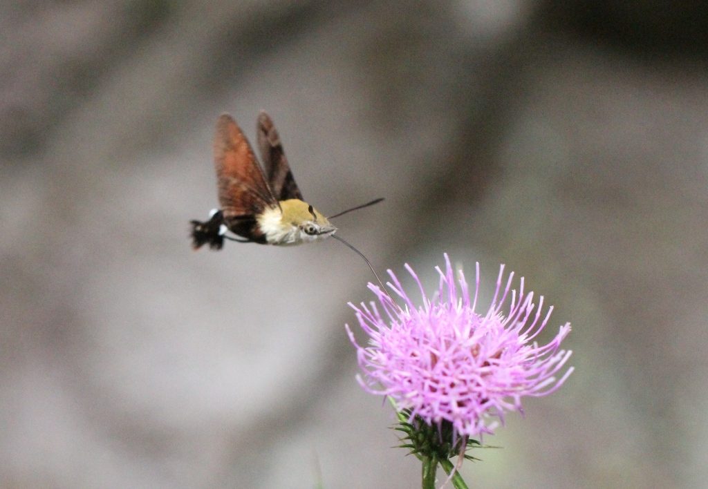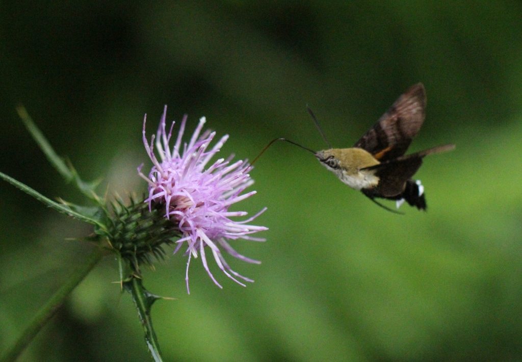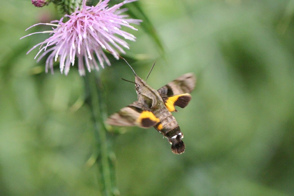 ヨシノアザミ?が咲いていました。ガの仲間やトラマルハナバチ?、ヒメハラナガツチバチ、キタキチョウ、アサギマダラ、イチモンジセセリなどが吸蜜に来ていました。