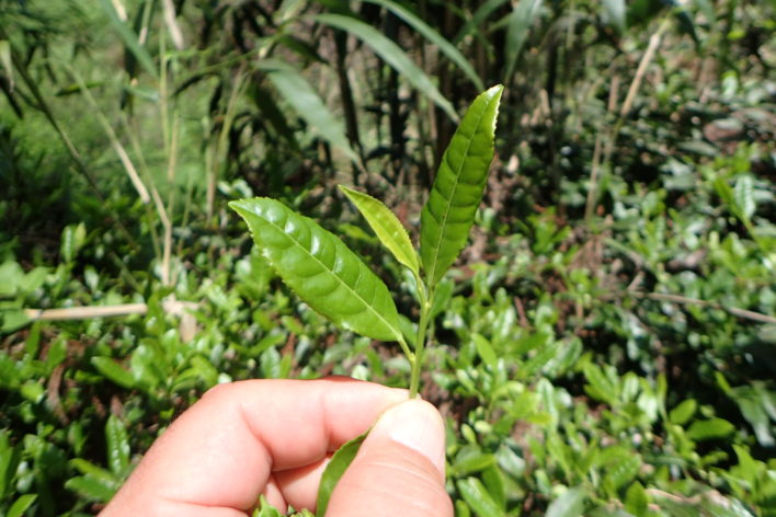 1芯2葉(若芽1個と若葉2枚)で摘み取る