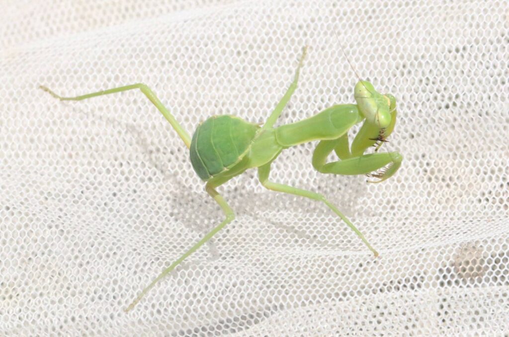 ハチを採っていたら、捕虫網にカマキリの若僧が・・・・。